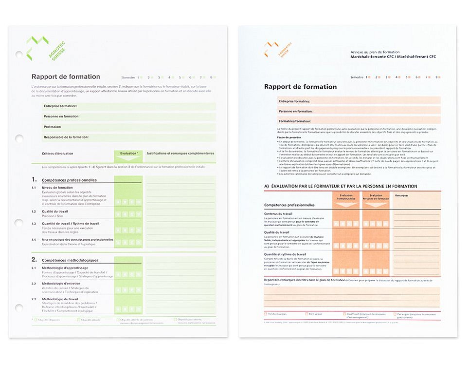 Il est obligatoire de remplir le rapport de formation à chaque semestre. Avec le rapport modèle d’Agrotec Suisse, vous avez le bon outil à portée de main. Vous pouvez télécharger le modèle en ligne ou le commander dans le shop AM Suisse (article F381181).